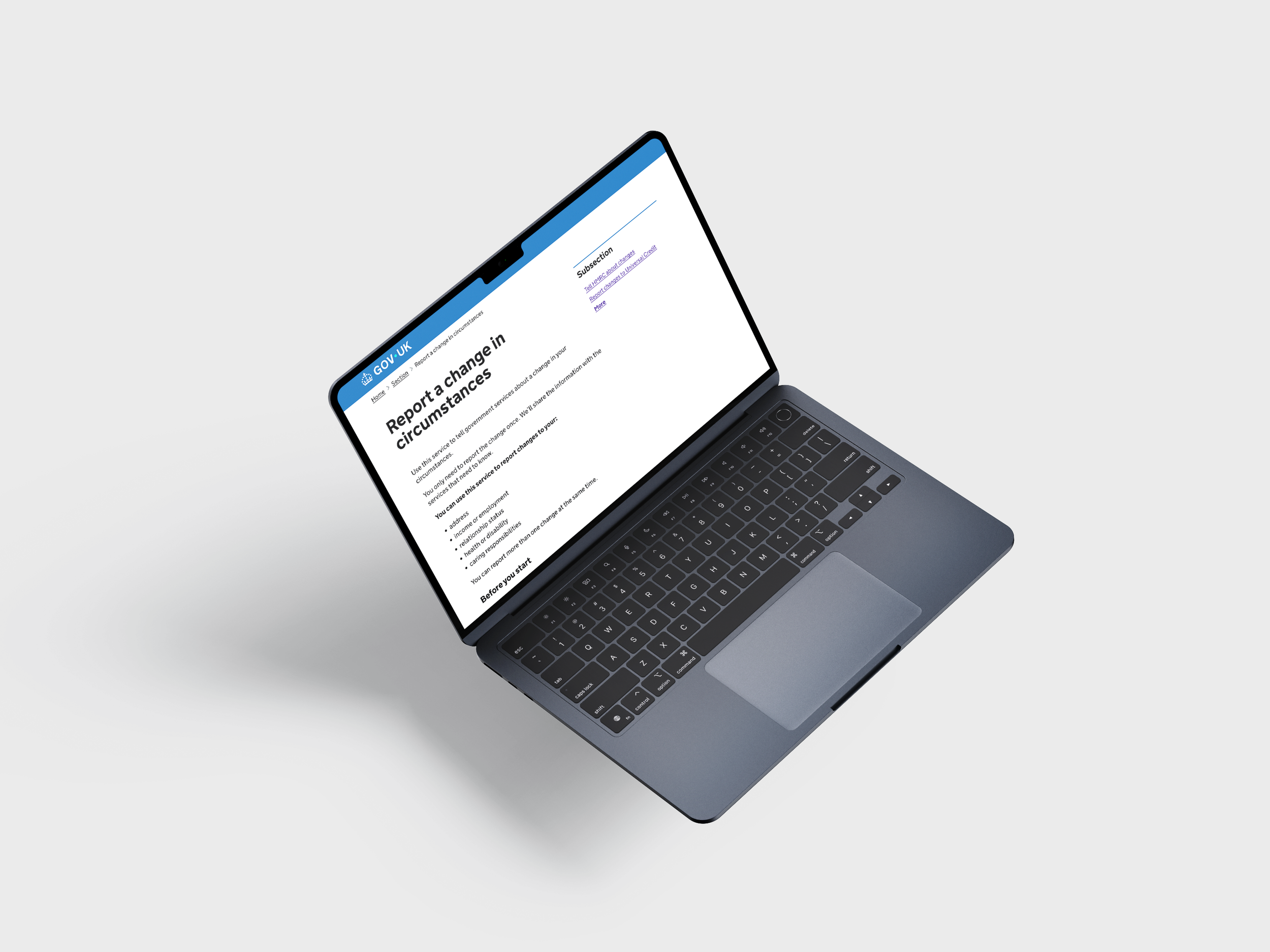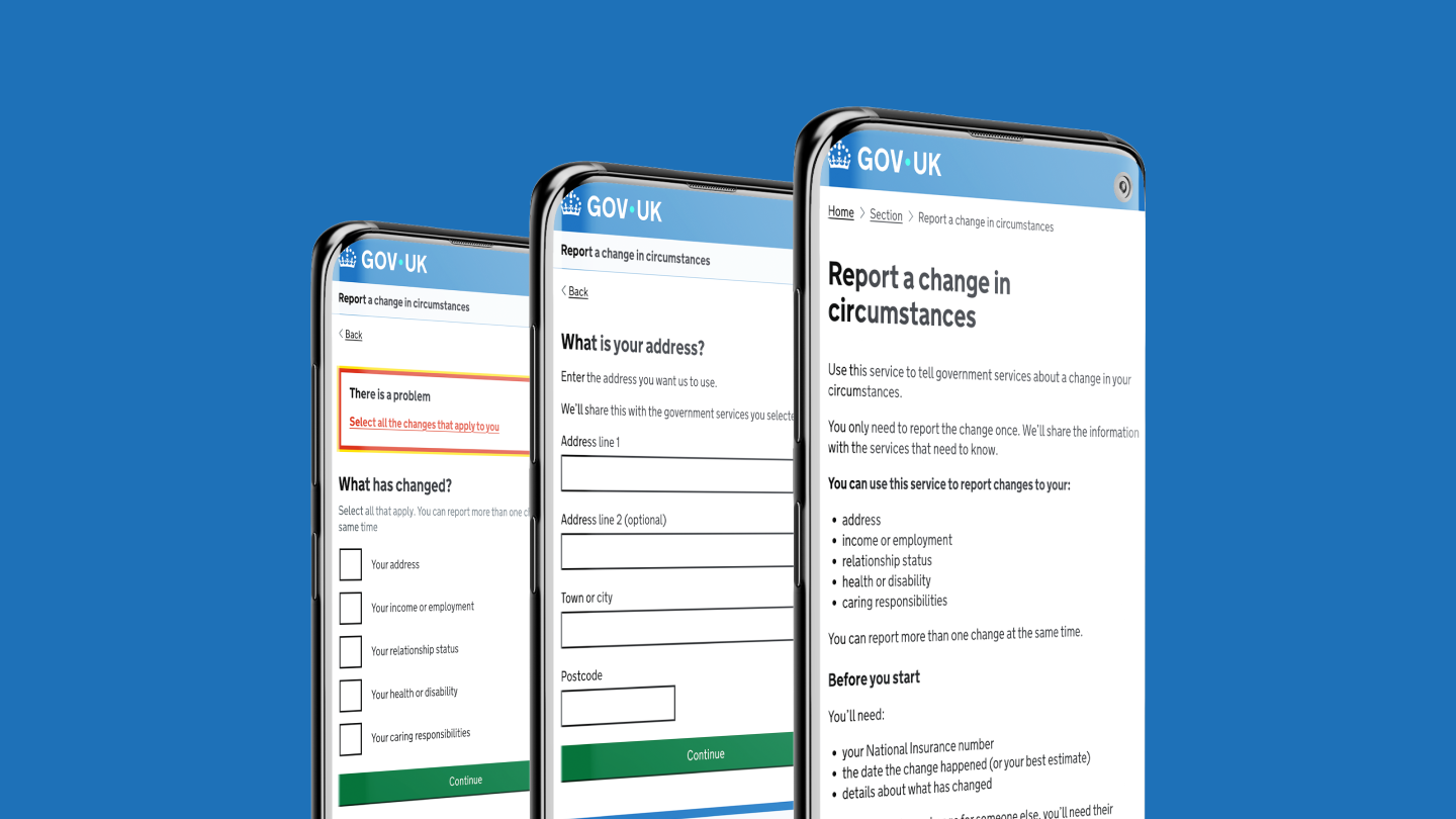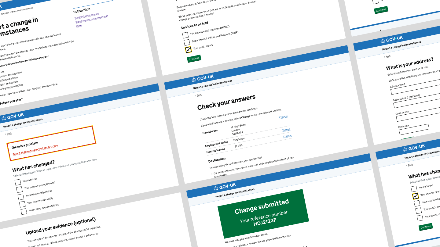 People often need to report the same change in circumstances to multiple government services — for example when they move home, change jobs, or take on caring responsibilities.